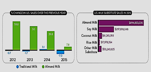 Blame the lactose intolerance, almond milk sales is now picking up in comparison with traditional milk: